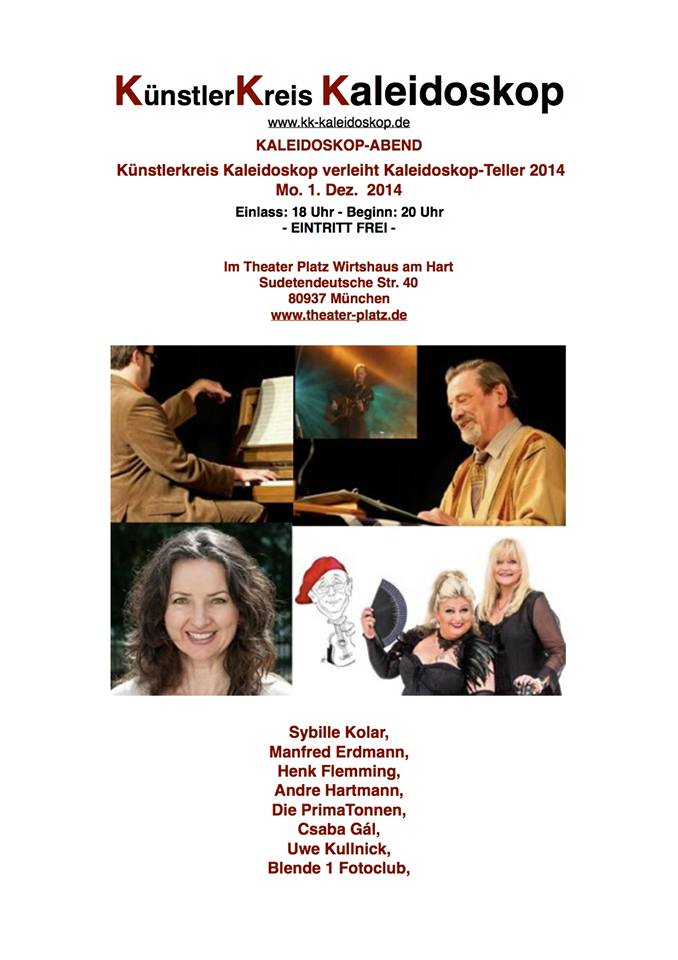 Der Künstlerkreis Kaleidoskop hatte mich eingeladen, im Rahmen seines Jahreshöhepunkts eine Kurzgeschichte zu lesen. Ein unvergesslicher Abend mit unglaublich talentierten Teilnehmern – Musikern und Kabarettisten.